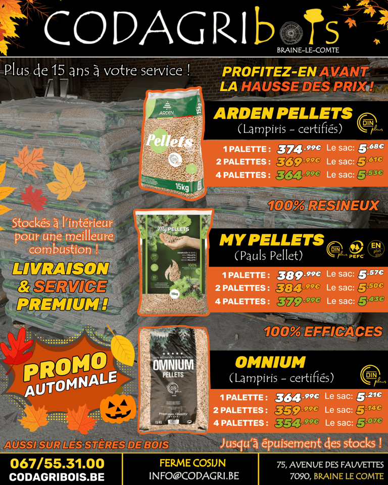 Profitez des PROMOS d’AUTOMNE sur le bois et les pellets chez Codagribois ! 🍁